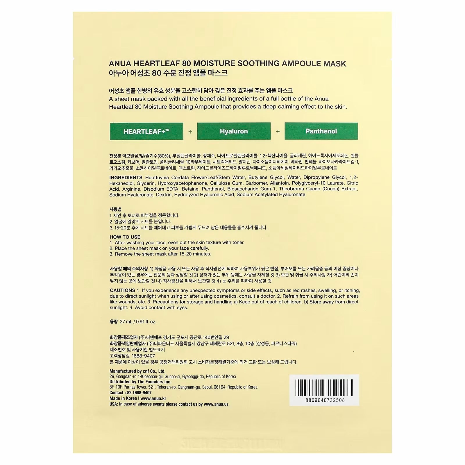 ANUA Heartleaf 80+ Moisture Soothing Ampoule Mask (1 mask)